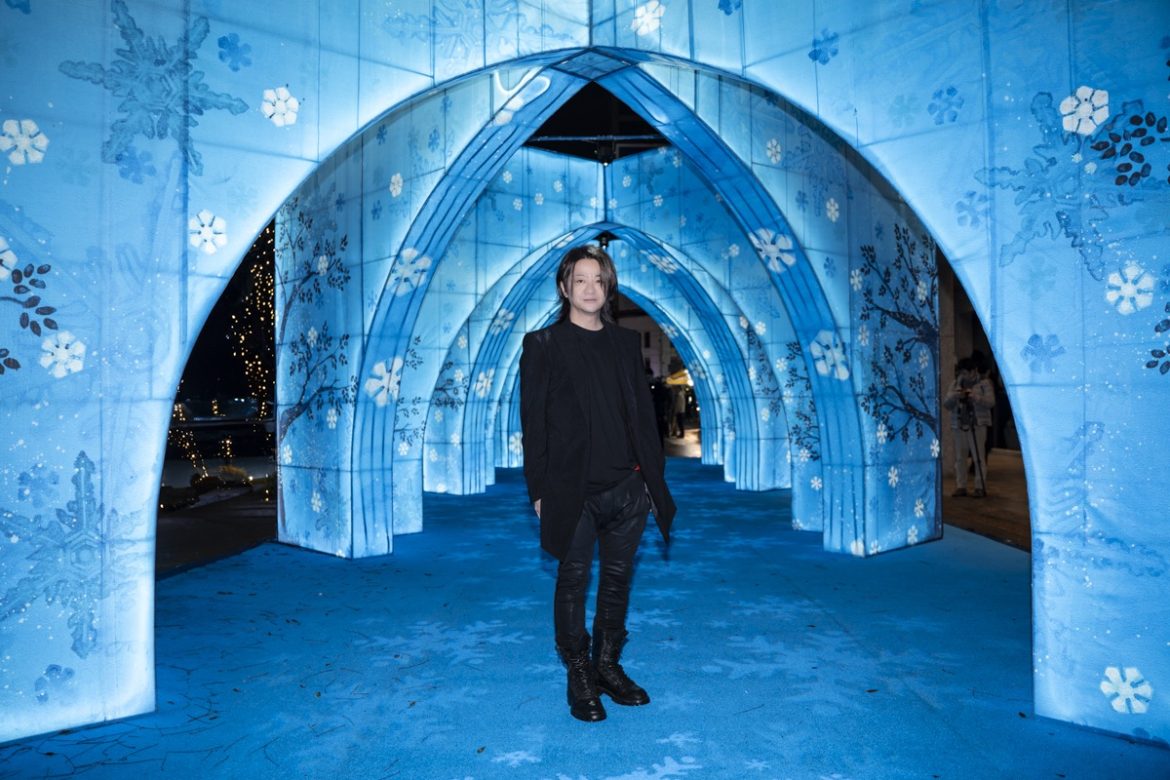 台北市長蔣萬安、日本駐台代表片山和之、策展人劉治良,今晚也跟TERU一同在捷運西門站6號出口附近,欣賞由TERU 創作的「等待豐收的樹」,TERU則以日文向大家解釋這次創作的意念:「我以故鄉函館的『藍』為核心,加上雪的『結晶』。雪花的結晶形狀變化無窮,我選擇了自己最喜歡的一種結晶形狀,並將它描繪在這裡。這幅畫作有十層,最後繪製的是一棵蘋果樹。去年8月我這裡場勘時,對旁邊的行道樹印象深刻,希望透過我的作品讓日本的蘋果樹跟台北的行道樹,一起在同個天空下共舞。至於音樂也是這次特別為台北燈節製作,雖然我不太聽古典音樂,但當我看到這個場地的瞬間,就覺得一定要配上古典樂。而且聽說台灣不會下雪,所以是特意創作出帶有下雪感覺的音樂給大家。希望藉由畫作、燈籠、音樂,讓大家感受到北海道的冬天。」劉治良先生也補充,TERU即使在GLAY樂團30週年巡迴期間,仍來台兩次來台並親自到工廠監製,對作品竭盡心力。
