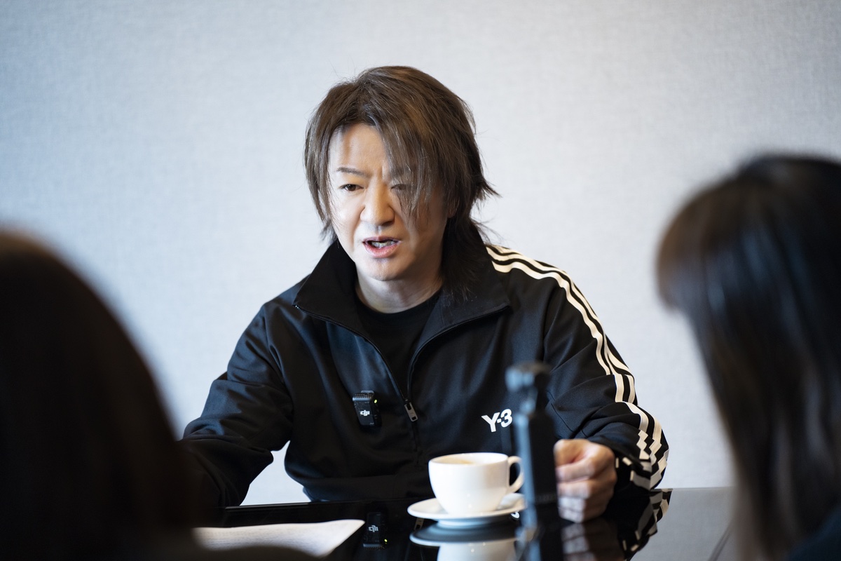 以前我曾為GLAY的DVD設計過封面,那時候有一段時間,我的確很希望能夠將音樂與繪畫融合,所以也畫了不少插畫類型的作品。但現在,我開始使用壓克力顏料與畫筆來作畫,這與過去使用數位繪圖筆的風格完全不同。當這個轉變發生後,反而希望將音樂與繪畫劃分為兩條不同的軸線來發展,清楚地分開「音樂是音樂,繪畫是繪畫」,兩邊各自獨立運作。