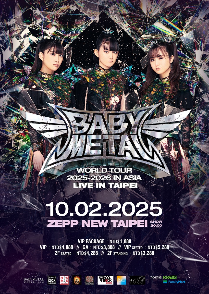 BABYMETAL自出道以來屢獲「Kerrang!」、「Metal Hammer」等權威音樂媒體肯定,並曾與Metallica、Lady Gaga、Slipknot、Red Hot Chili Peppers、Guns N’ Roses等國際巨星同台演出。2025年推出第四張專輯《METAL FORTH》,特別選在4月1日「狐狸日」公布相關消息,象徵與樂迷之間的特殊連結。新作收錄與美國怪奇人氣藝人Poppy共演的〈from me to u〉,以及與印度金屬樂團Bloodywood合作的〈Kon! Kon!〉,展現超越國界與曲風格的世界級音樂能量。