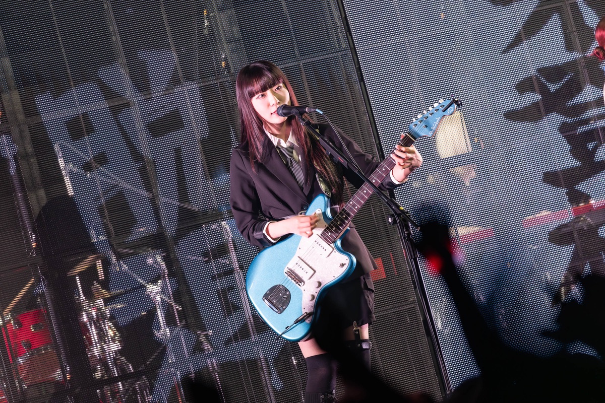 理名:我其實不太會特別意識自己是以動畫中「井芹仁菜」的身份站上舞台,更多時候就是以「理名」的狀態來做樂團的表演。不過因為動畫中有許多樂團的舞台場景,其中一些有很具代表性的手勢或動作,我會在現實的演出中適度融入這些元素,讓觀眾感受到動畫和現實的連結,也希望粉絲能因此更開心。