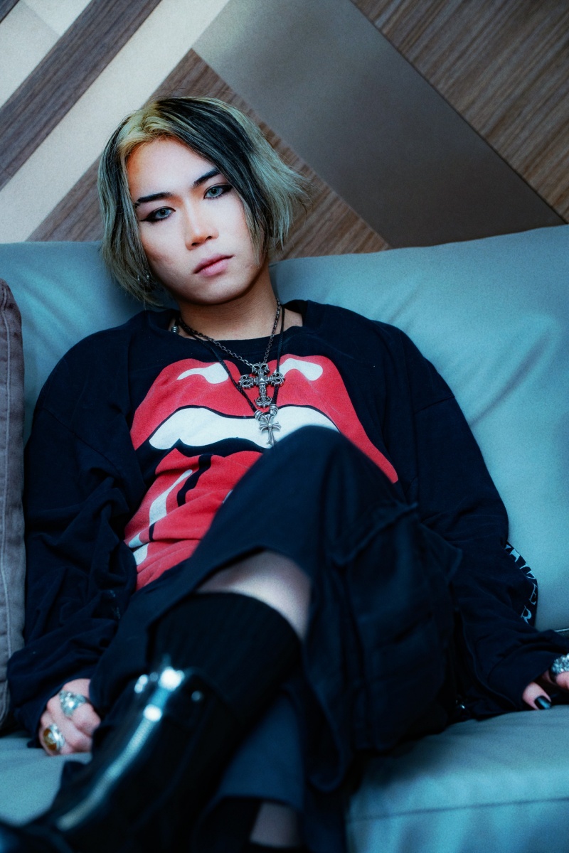 我本來就一直很喜歡,也常聽視覺系的音樂。日本的視覺系當然不在話下,也受到像瑪麗蓮·曼森(Marilyn Manson)等樂手的影響。看到那些在舞台上化妝表演的搖滾音樂人,我覺得非常憧憬,也是我開始化妝的契機。而現在我也依然抱持著那種憧憬,帶著妝容進行激烈的現場表演,這種感覺真的很好。