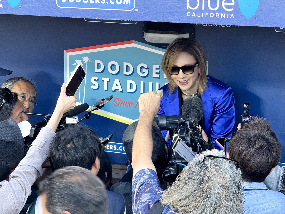 YOSHIKI在道奇隊休息區接受媒體採訪時表示:「在這片土地,或者說在美國,看到日本人能夠如此活躍,讓我感到非常開心。以大谷選手為首,還有山本選手、佐佐木朗希選手,都是非常了不起的超級巨星。這讓我感到很高興,也從他們身上獲得了力量。」而這天大谷翔平擔任第一棒指定打擊,山本由伸更是先發投手,YOSHIKI興奮表示:「能在這樣特別的一天受到邀請,我非常感謝。今天演奏結束後,也想好好享受這場比賽。」