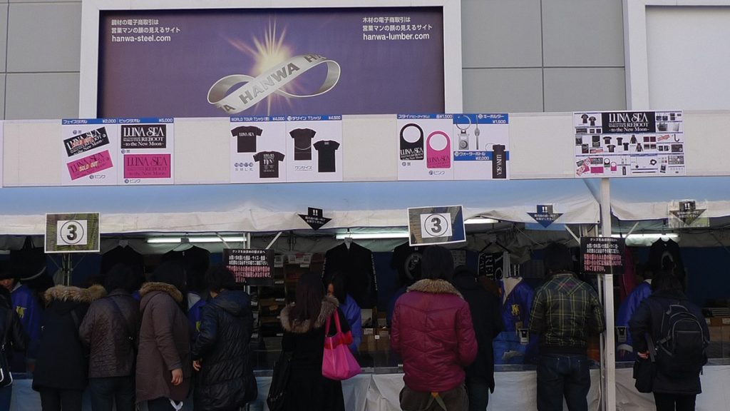 23日一早10點,分別在東京巨蛋22號門、25號門開始販售此次巡迴的週邊商品,整個東京巨蛋瀰漫的是參加慶典般的喜樂氣息,縱使很多樂迷習慣在LUNA SEA演唱會穿著黑服參戰,但與第3夜的「黑服限定」氣氛又有些許的不同。