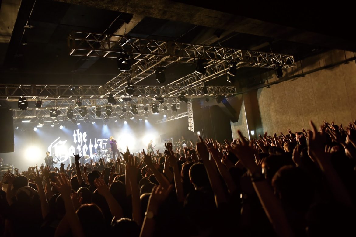 海底聲納般迴響的音效之中,URUHA彈起清亮的分散和弦,籠罩在湛藍燈影下的會場如深海靜謐而迷濛。演出中段來到情感充沛的「その声は脆ㄑ」,一如the GazettE拿手的抒情詩篇,在RUKI如泣如訴的演唱裡,舞台後方4組燈光如黎明般緩緩亮起,讓全場聽得心醉心碎、如夢似醒。來到整場巡迴最嗨最猛的「DOGMA」,漆黑教義堂堂降臨,全場又跳又甩頭,並伸長雙手如教徒般效忠追隨。這首歌的現場魅力,並不只是單純的節奏重音或是旋律性,而且讓人敬畏的魄力與渲染力,如同不祥之雲崩裂散開,台上台下團結齊心,創造出獨一無二的空間感。