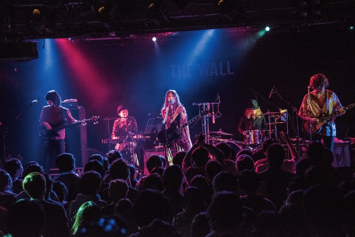 在這THE WALL會場中,第一曲就演出同名的「THE WALL」,縝密細碎的鼓點、流麗韻雅的貝斯聲線、增添超現實氛圍的鍵盤音色,加上亀本俐落到位的吉他樂句、松尾明暢的吉他刷弦與沙啞粗獷的獨特嗓音,完美展現他們以迷幻搖滾為基調所發揮出的多元音樂性。如同置身於迷霧森林之中,清脆的風鈴聲響,加上樂手們的合音,「BIZARRE CARNIVAL」就像是在會場施了巫術魔法,邀請大家進入GLIM SPANKY的怪誕嘉年華。旅程已經展開,「The Trip」前奏傳來陣陣的落地鼓聲,像是山野之中的原始粗獷感,松尾刷動著透亮的12弦吉他音色,帶來如微風吹拂的清爽。