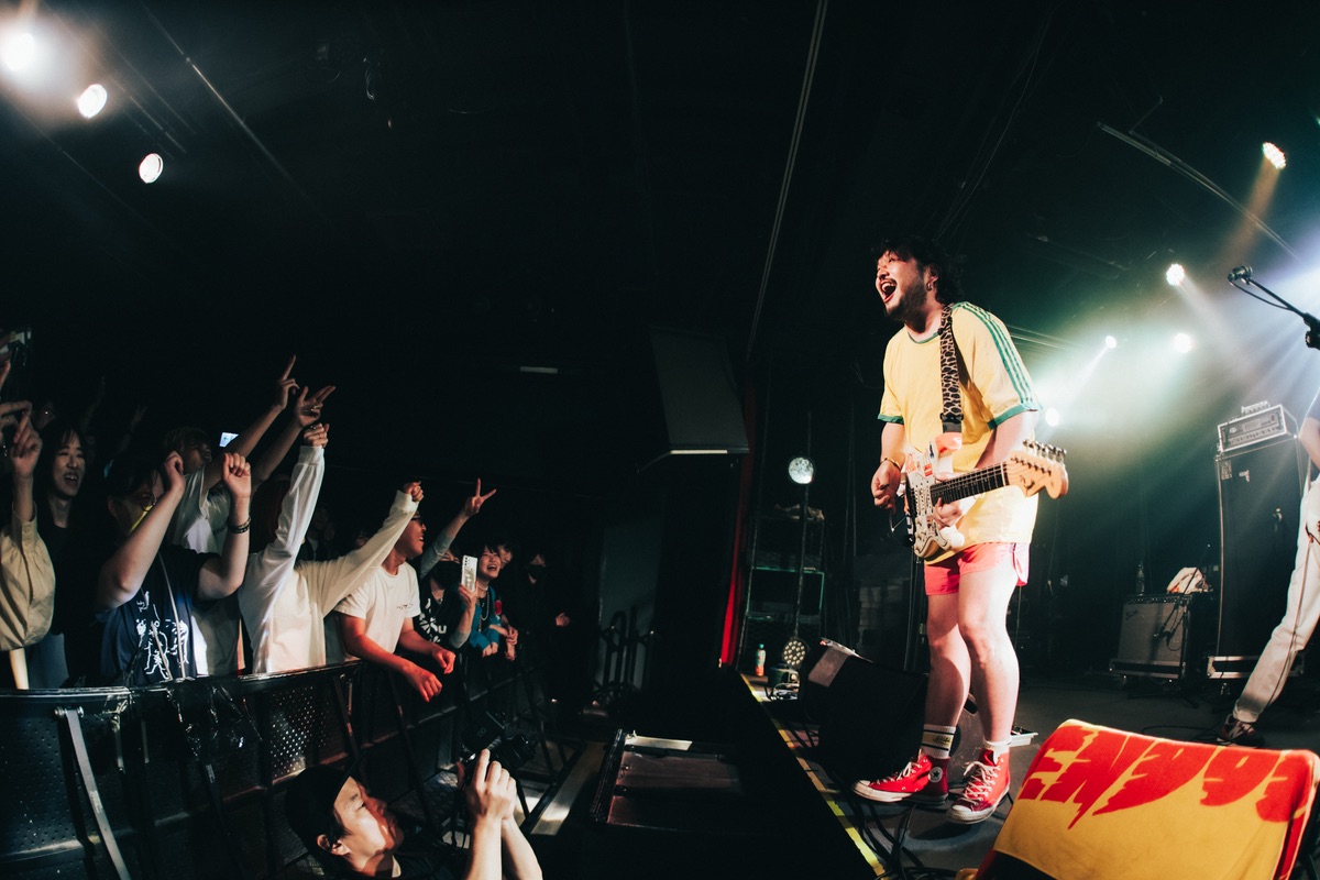 第一組登場的是東京的四人樂團TENDOUJI,由主唱兼吉他モリタナオヒコア、主唱兼吉他アサノケンジ、貝斯手ヨシダタカマサ及鼓手オオイナオユキ所組成。場內響起「Olé, Olé, Olé(The Name of the Game)」足球應援曲作為開場,台下鐵粉也拿著準備好的銅鑼跟著節奏敲擊,身著巴西足球隊上衣的主唱兼吉他手アサノケンジ用英文大喊:「台灣,準備好了嗎?」帶來首張單曲「COCO」,濃濃的九零年代氛圍的吉他搖滾,有別於乍聽音源的精緻,讓人進入美國另類車庫搖滾的公路風情,「Young Love」主唱兼吉他手モリタナオヒコ,則在後段將曾經翻唱的Cyndi Lauper「Time after Time」一曲巧妙結合。其實TENDOUJI這次首度的台灣演出,歌單在登場前一改再改,可見其重視程度。