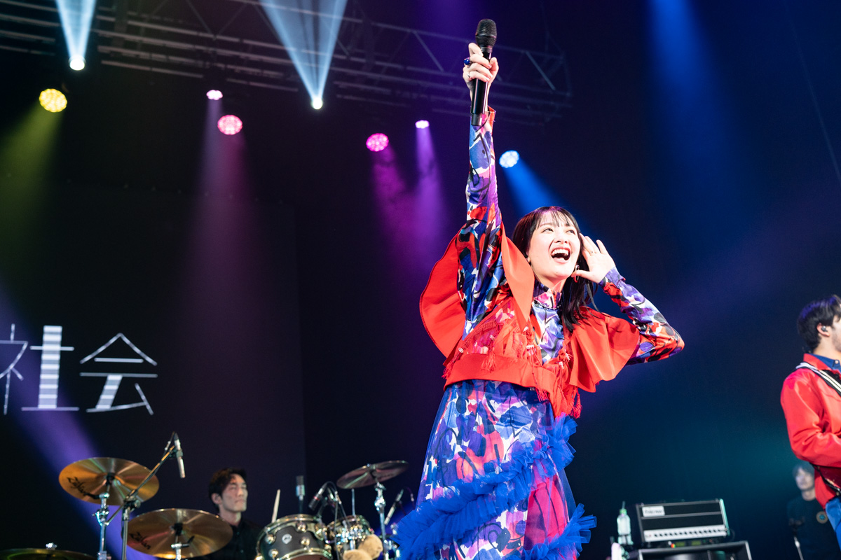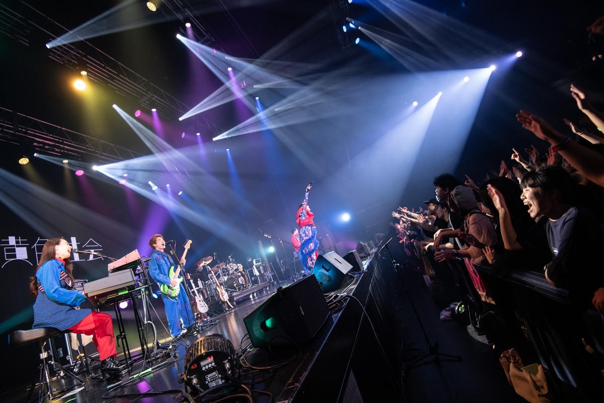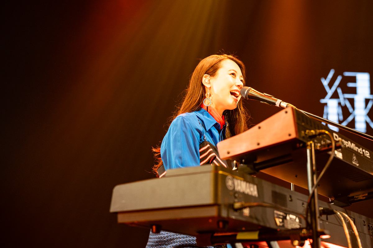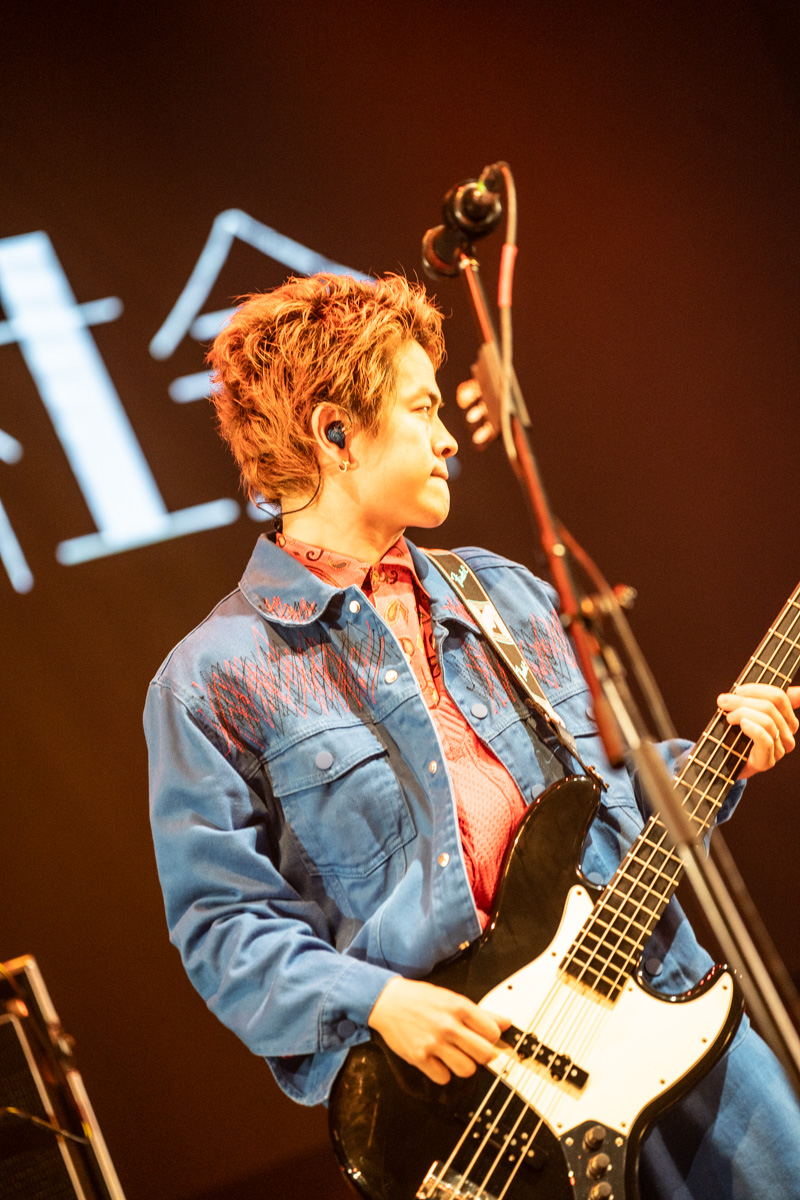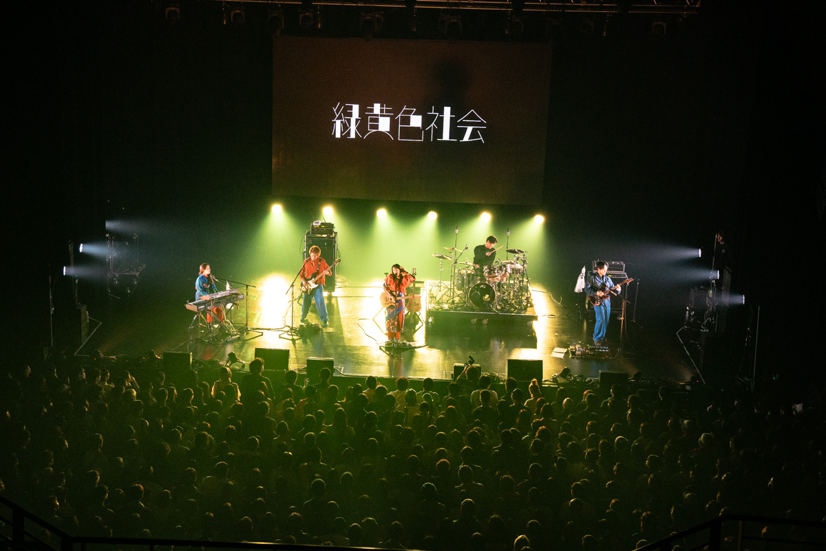 綠黃色社會以鮮明的紅藍色系服裝造型登場,長屋晴子背著吉他彈奏,時而展開雙臂高歌〈始まりの歌〉掀起另一波高潮。吉他手小林壱誓的彈奏技巧更為進化,偶爾也展露歌聲。貝斯手穴見真吾,像是來到老地方般更加狂放,除了跳躍還外加大抬腿,又嗨又瘋。氣質擔當的鍵盤手peppe仍舊甜美可人,與長屋晴子、穴見真吾的互動更是讓人看得心花怒放。