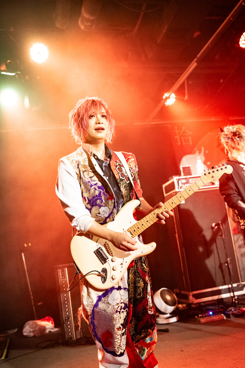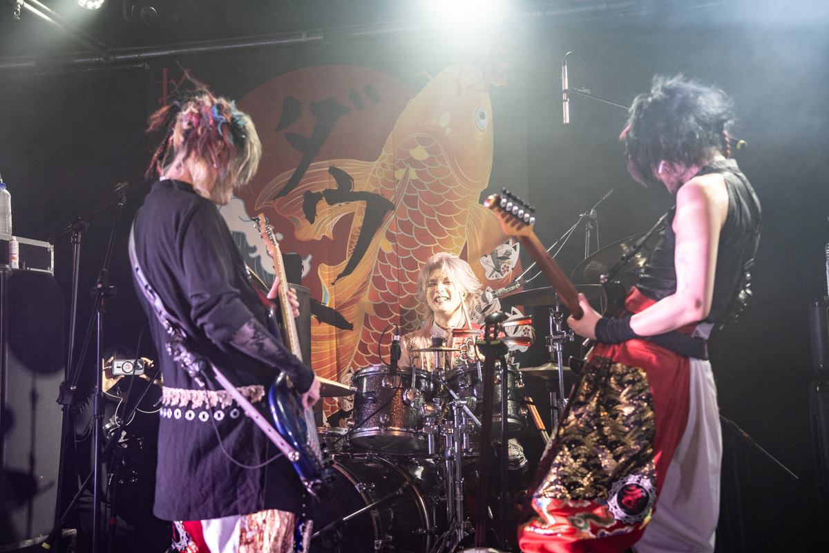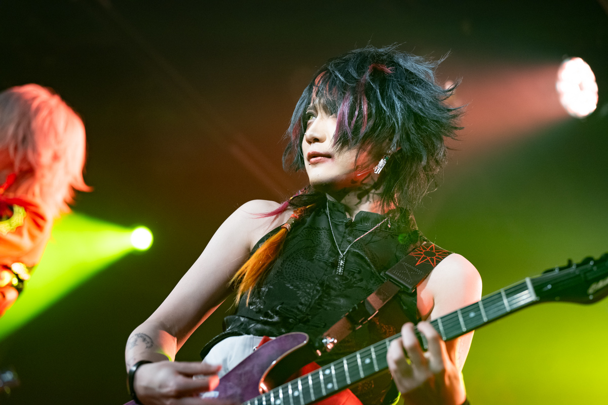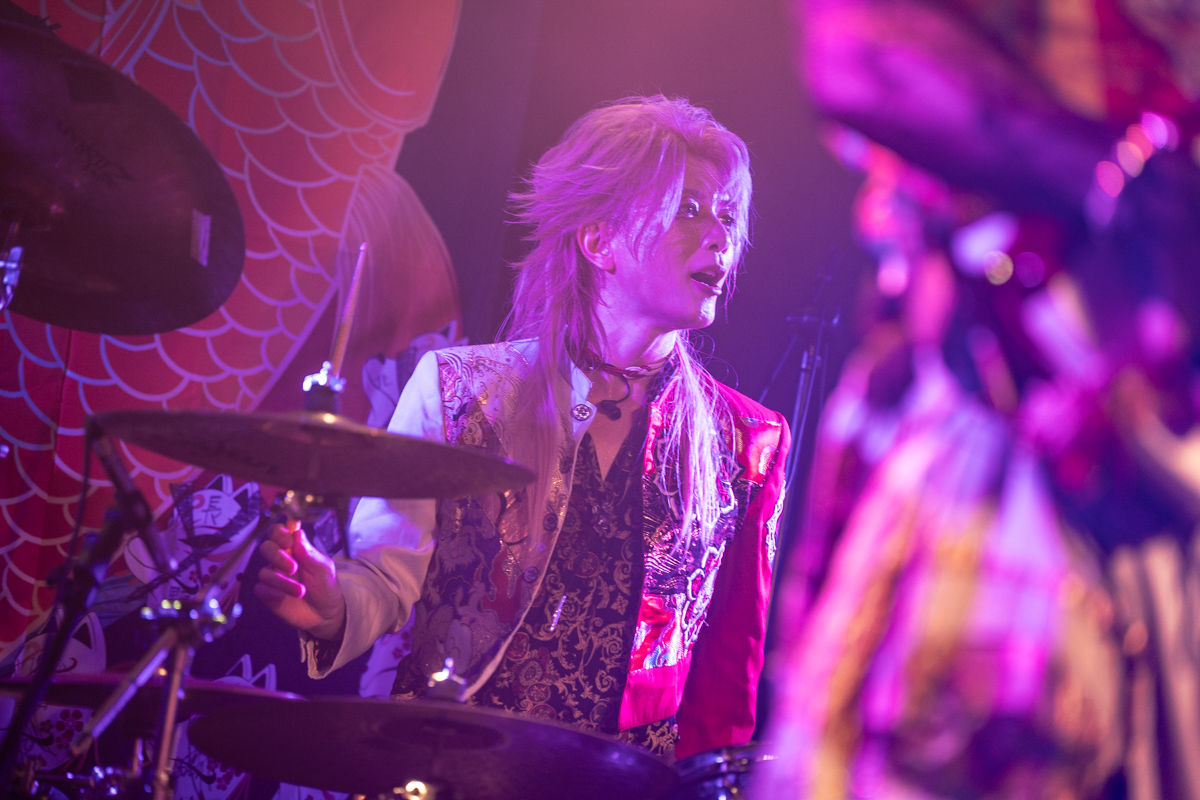 幸樹再次背起三味線演出〈歌舞伎デスコ〉邊彈邊喊邊甩頭,貝斯手玲夏也加入吶喊與合唱,吉他手威吹帥氣轉圈下腰,吉他手小光邊跳躍邊指著台下畫圈圈,連鼓手直人也是不時站起身打鼓並轉動鼓棒,5人各具特色魅力的舞台演出魅力,令人目不暇給、心花怒放。〈DANCE NUMBER〉的電音前奏響起,威吹哥哥照例站上高台側身舉起雙手打起拍子,在重拍前奏中,幸樹跨著馬步,與台下一同豪邁8字甩頭,不時在曲中加入中文「台灣」、「我愛你」,4名團員甚至合著節奏一起在舞台上高高躍起,從團員到樂迷共同呈現出,只有在此時此刻才能彼此擁有的熾熱景象。首日的舞扇曲為〈卍〉,在幸樹拋起扇子打拍子的同時,還跟玲夏開心互動,台下也紛紛拿起不同時期的週邊摺扇,邊mosh邊揮動。