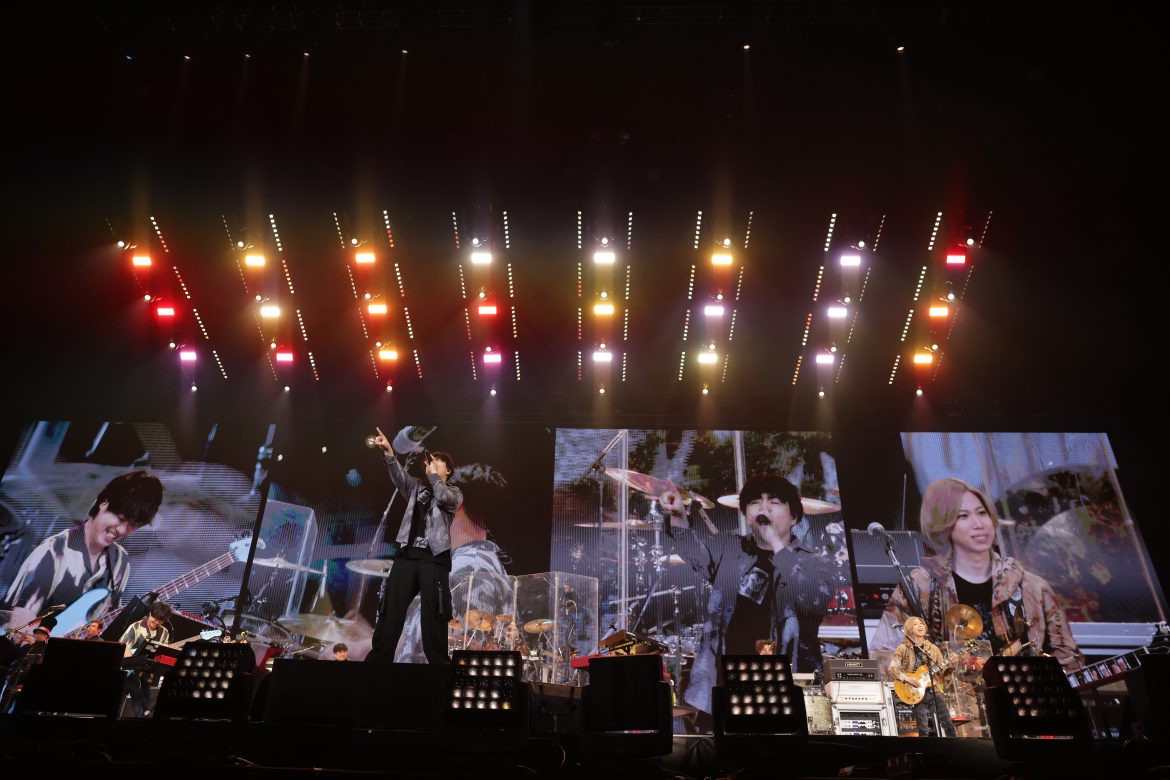 當舞台正上方亮起象徵巡演主題的「REJOICE」字樣時,〈宿命〉的旋律響起,現場大銀幕即時分割出四名團員的演奏畫面,觀眾得以近距離感受他們的音樂熱情與專注神情。吉他手小笹大輔站在舞台中央敲擊鼓,貝斯手楢﨑誠彈奏合成器,曲末更綻放出火花,觀眾席爆發出陣陣驚嘆。經典曲目連發來到輕快的〈Stand By You〉,前奏由華麗的銅管樂加上藤原聡彈奏的鋼琴,場內燈光隨著節奏閃爍,觀眾也打起拍子、大聲合唱,歌聲響徹夜空。